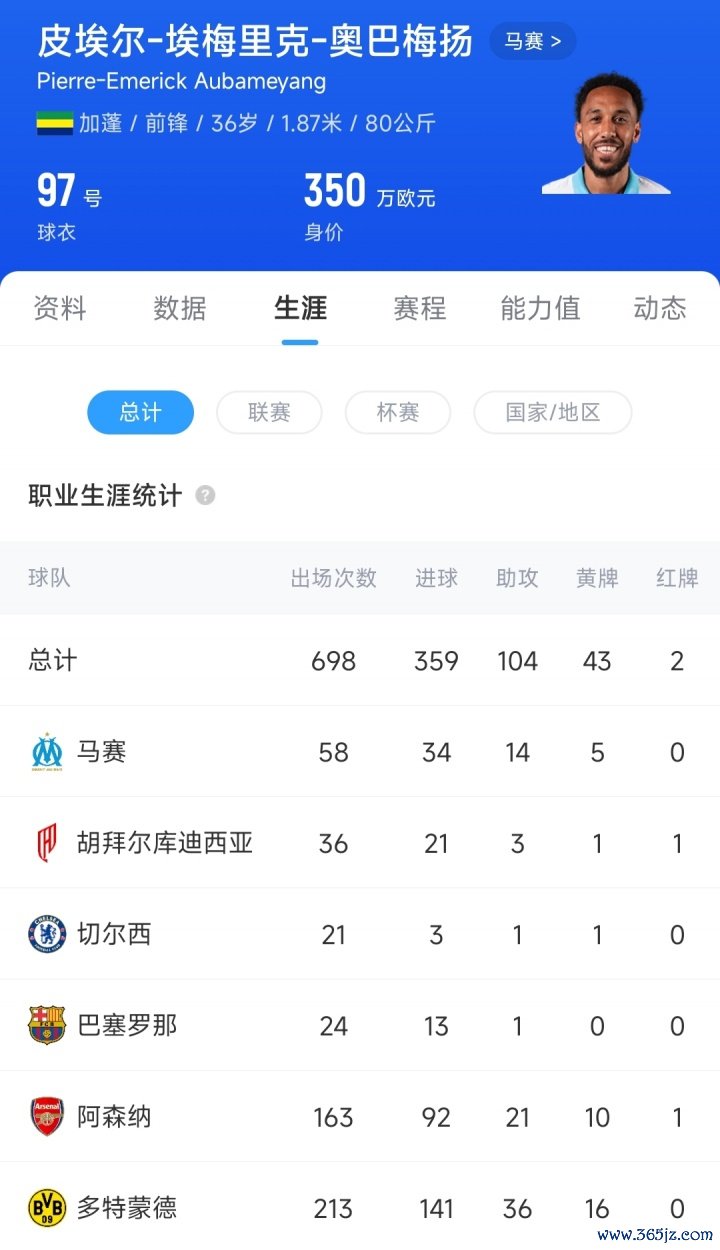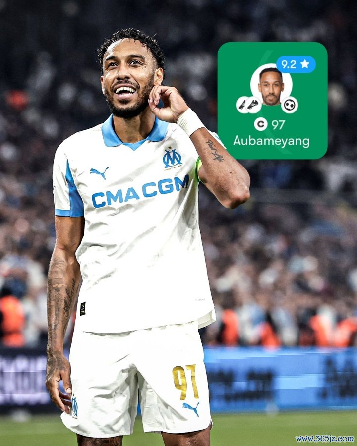 巅峰身价7500万欧!36岁奥巴梅扬欧冠1射2传,总结马赛7场4球2助