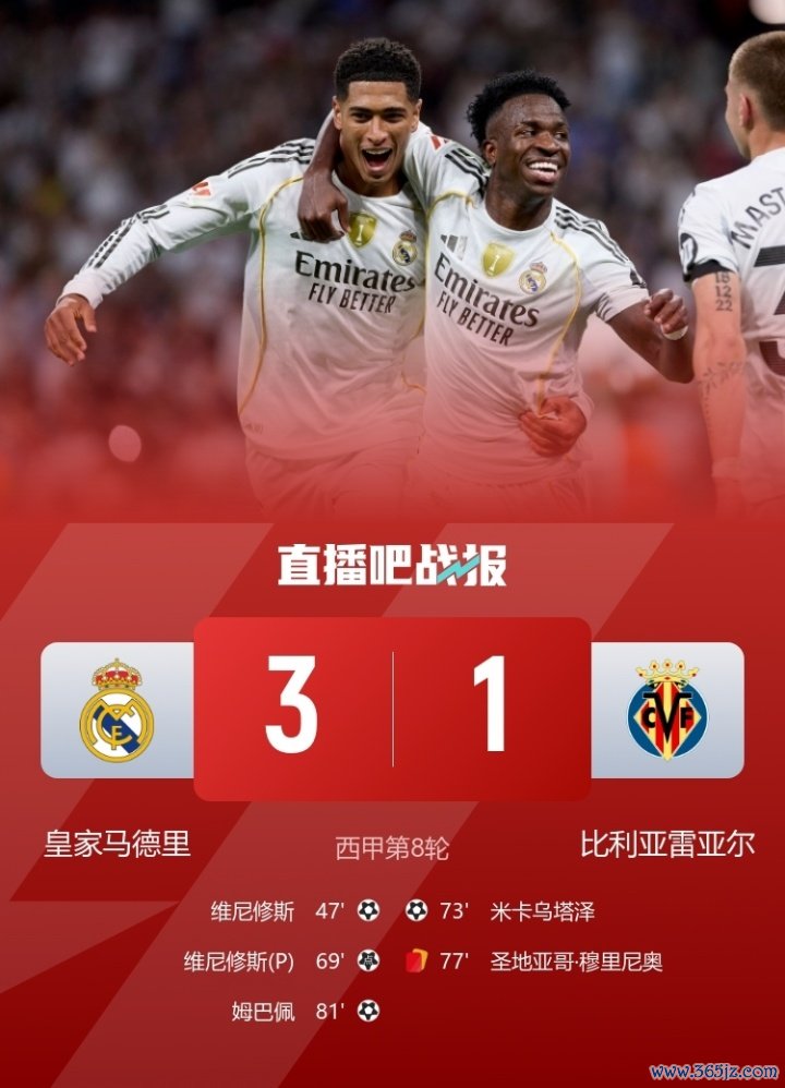 皇马先赛暂2分上风登顶,维尼修斯双响,姆巴佩传射+让点伤退。