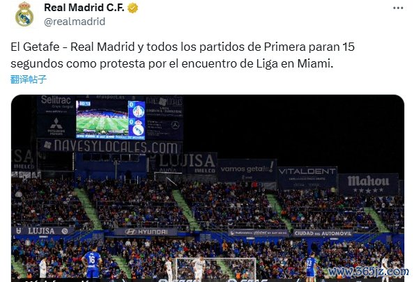 10月20日讯 西甲第9轮,皇马客战赫塔费,两队球员开场暂停15秒以抗议西甲外洋赛,皇马也在社媒和官网发文。
