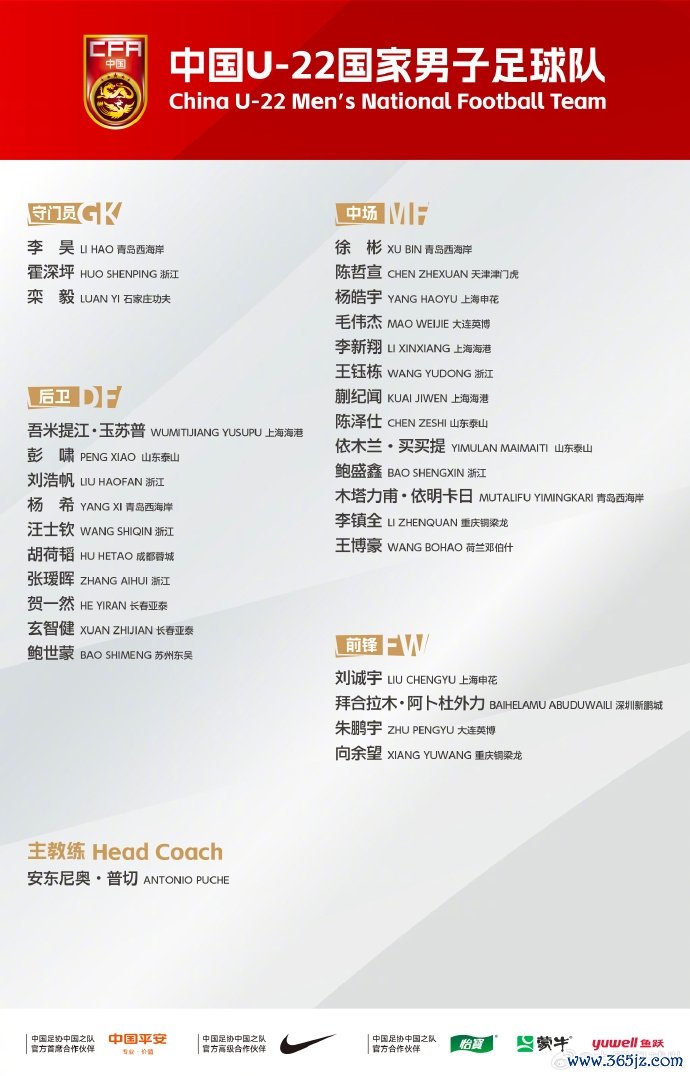 11月5日,中国足球队官方公布U22国足熊猫杯参赛名单,泰山队三东谈主入围,陈泽仕、彭啸和依木兰将在全运会收尾后前去成王人干涉集训,熊猫杯的比赛时期是11月12日、15日和18日,敌手先后是越南、韩国和乌兹别克斯坦,开球时期王人是19时35分。浙江队是入选球员最多的俱乐部,王钰栋、刘浩帆、汪士钦、霍深坪、鲍盛鑫、张瑷晖入选。