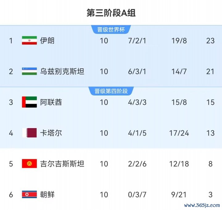 世初赛第3阶段,国足与阿联酋区别被分至C组、A组;本阶段最终国足积9分排行小组第5无缘晋级下一阶段,阿联酋积15分排行小组第3晋级。