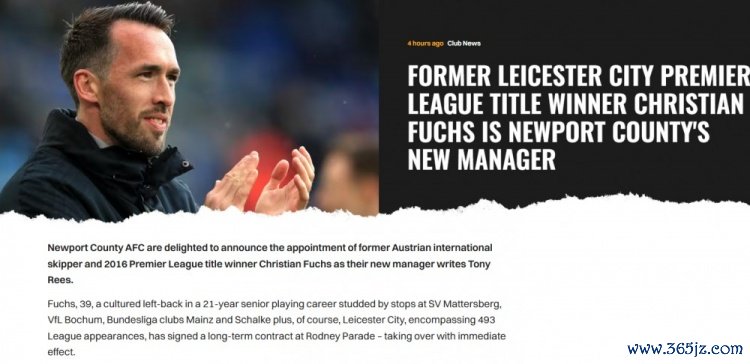 11月21日讯 纽波特郡官方文书,任命39岁的前莱斯特城英超冠军球员克里斯蒂安·富克斯为新任主解释。