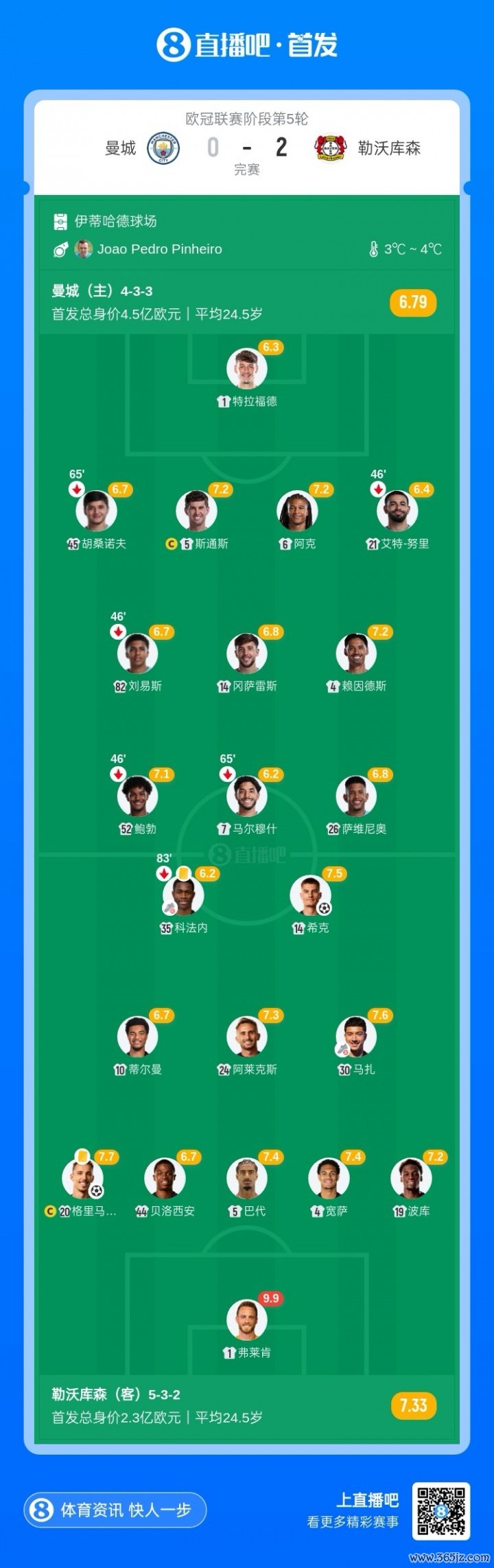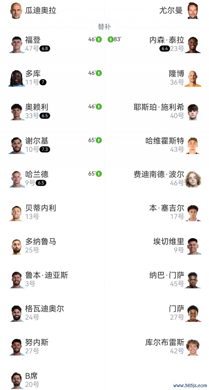 【曼城首发及换东说念主信息】