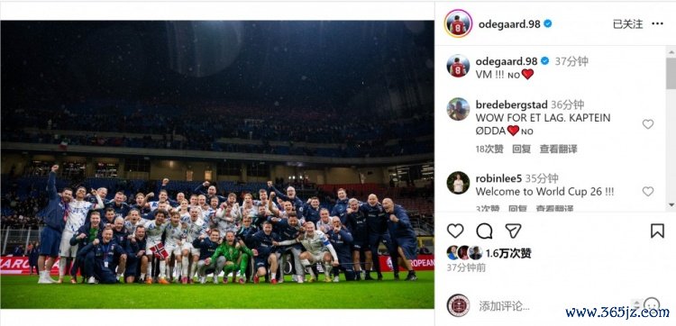 大赛梦圆⚽厄德高社媒晒挪威队大合照:天下杯!