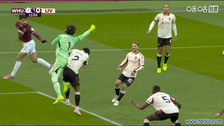 11月30日讯 英超第13轮,西汉姆联vs利物浦,比赛第12分钟,阿利松出击与戈麦斯相撞,倒地后队医进场调治,随后比赛陆续。