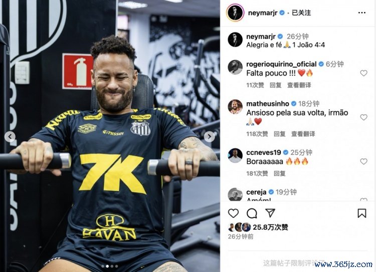 为复出勇猛!内马尔社媒晒出力量考核照:保握喜乐与信心🙏