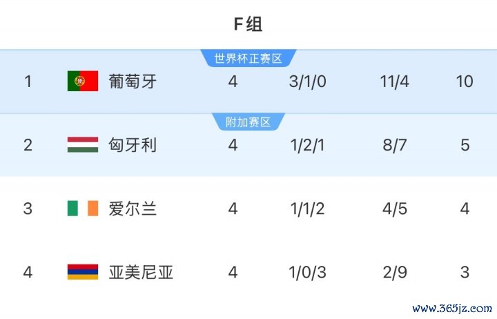 遭绝平!欧洲世初赛F组:葡萄牙5分上风领跑,下轮取胜即可晋级
