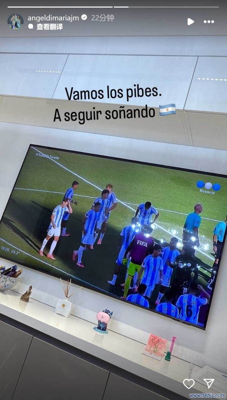 迪马利亚通过电视不雅看了阿根廷U20的比赛,他在酬酢媒体上晒出相片,配文:“干得漂亮,小伙子们,连接追赶梦念念!”