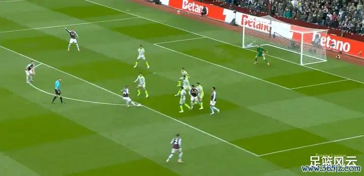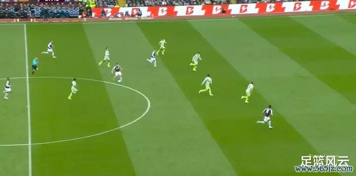 比如上图这个画面,当维拉队打反击的那刹那间,球队的退防档次感就出现了极其严重的问题。出现了漏东谈主、预判出现作假的情况,谁来盯出球东谈主,谁来阻止,谁又去补防弱侧得位置,球队的安靖出现了很大的破绽。