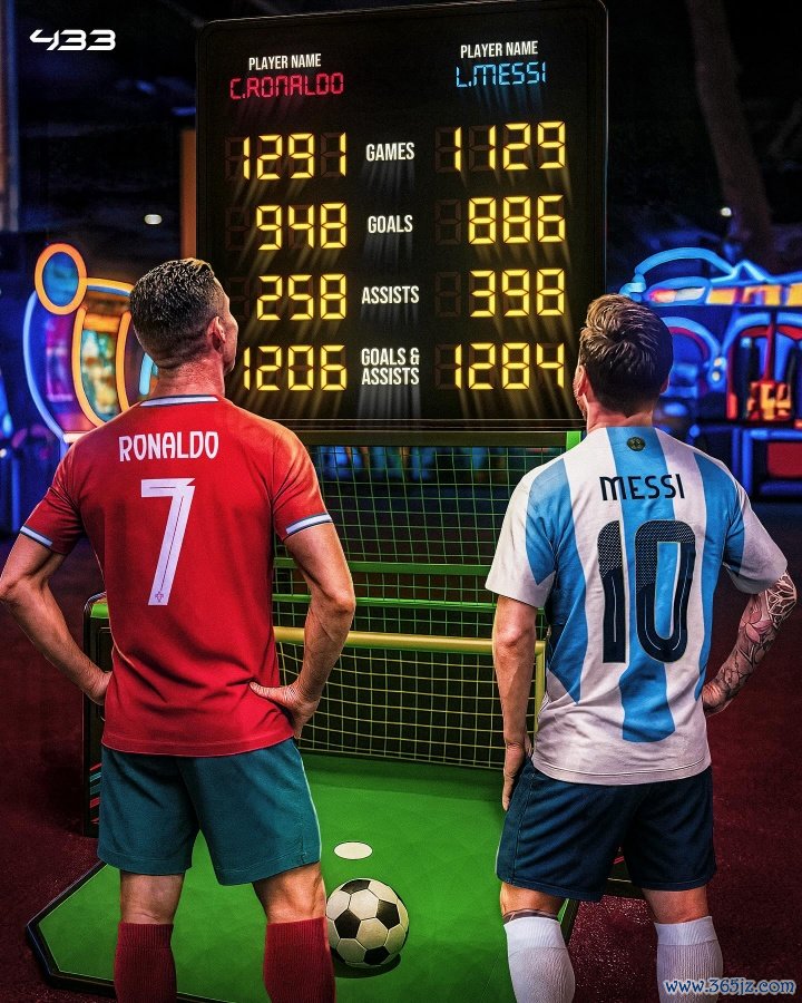 - 最伟大对决!433对比梅罗数据:C罗948球258助,梅西8