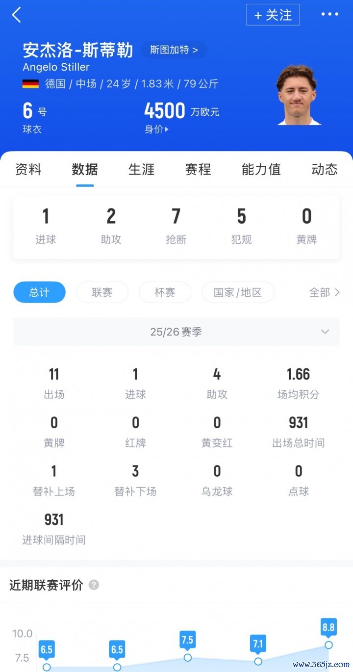 斯蒂勒现年24岁,司职中场,本赛季各赛事出场11次,孝顺1球4助,当今斯蒂勒德回身价为4500万欧元。
