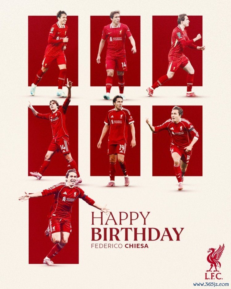 利物浦官方社媒晒海报,祝索博斯洛伊、基耶萨寿辰应许
