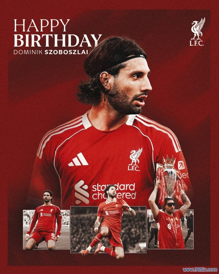 10月25日讯 今天是索博斯洛伊(25岁)和基耶萨(28岁)的寿辰,利物浦官方社媒晒出索博斯洛伊、基耶萨的寿辰海报,祝他们寿辰应许。