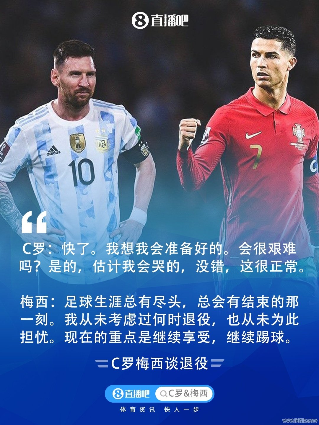 11月06日讯 近日,40岁C罗和38岁梅西先后秉承采访,齐谈到了说合退役的话题。