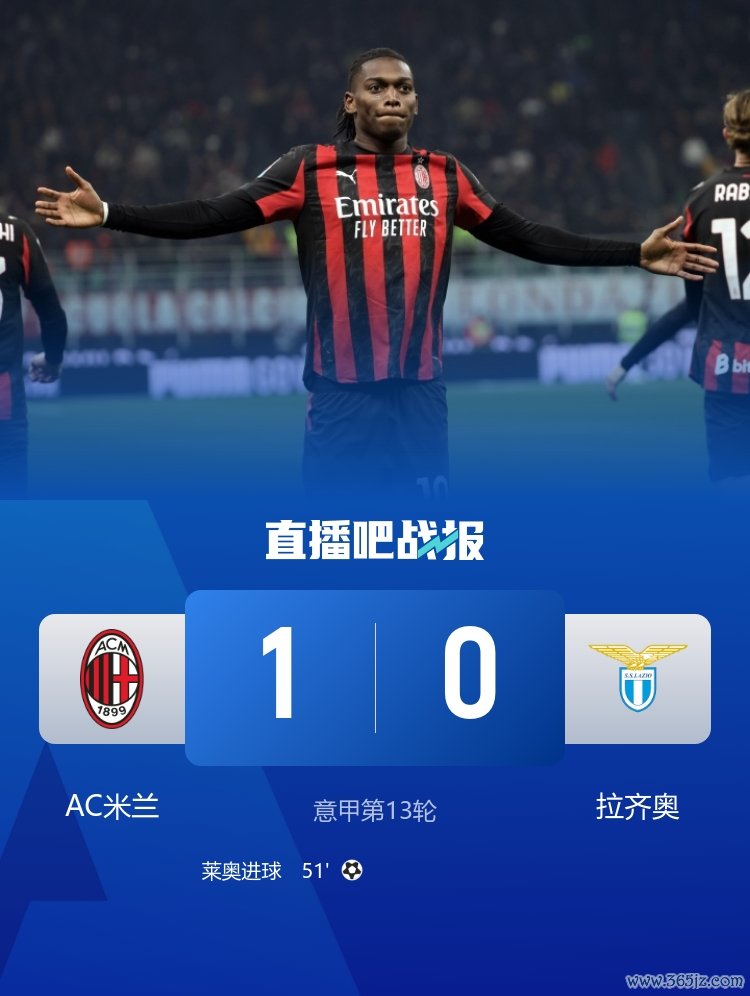 意甲联赛第13轮,莱奥制胜,AC米兰1-0驯顺拉皆奥。