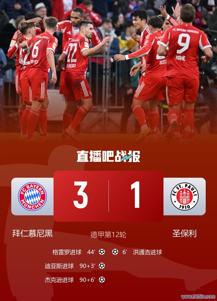 12轮不败!拜仁3-1补时逆转圣保利 迪亚斯传射格雷罗&杰克逊破门