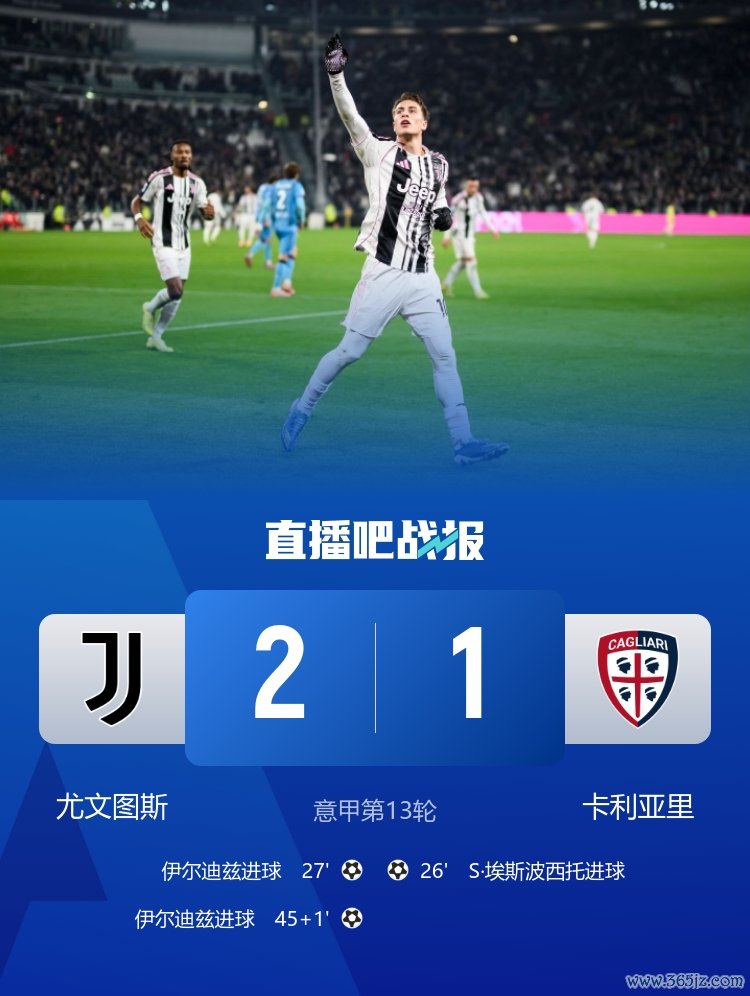 意甲第13轮,尤文图斯2-1卡利亚里,伊尔迪兹梅开二度。